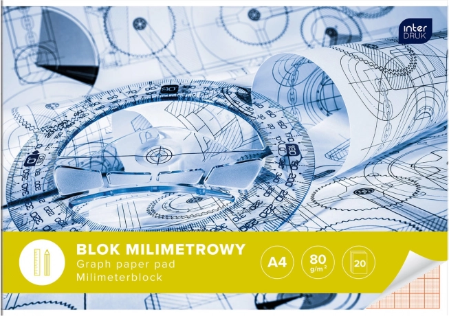 Praktisks A4 formāta milimetru papīra bloks no INTERDRUK, ideāli piemērots tehniskai zīmēšanai, diagrammām un grafikiem. Smalks milimetru tīklojums nodrošina precīzu darbu, papīra 80 g/m² biezums sniedz izturību, bet 20 lapas ar stipru līmēto iesējumu un biezas kartona pamatnes atbalstu ļauj ērti strādāt arī bez galda. Vāks no krītpapīra ir dažādos dizainos, kas tiek piegādāti nejauši.