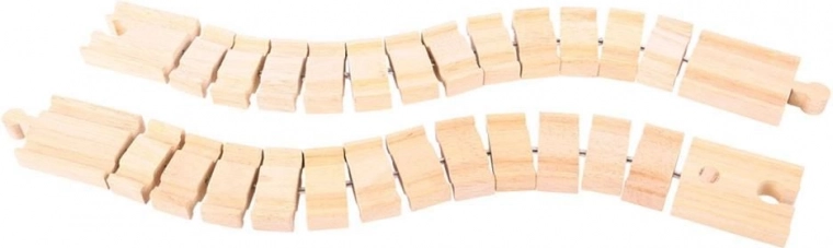 Papildiniet savu koka dzelzceļa trasi ar elastīgām un pielāgojamām sliedēm, kas viegli atrisina jebkuru spraugu vai trūkstošu formu. Iepakojumā ir 2 gabali lokanu sliežu no kvalitatīva koka, kas ir saderīgas ar lielāko daļu koka dzelzceļu tirgū. Spēle ar tām attīsta bērnu iztēli, veiklību un koordināciju.