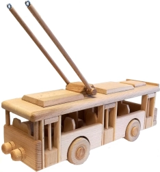 Trolejbuss ir izgatavots no kvalitatīva, cieta dižskābarža koka ar gludu virsmu un noapaļotām malām drošai spēlei.