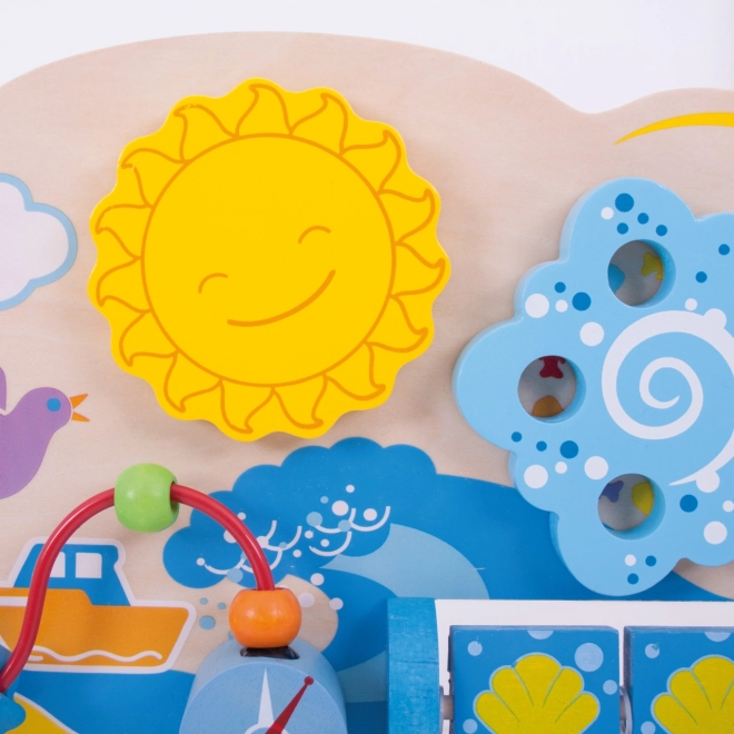 Atklājiet jautru un drošu rotaļlietu pašiem mazākajiem – koka motorikas dēli ar jūras motīvu, kas attīsta smalko motoriku, sensoro uztveri un roku-acu koordināciju. Pateicoties regulējamiem stiprinājumiem, to var viegli piestiprināt arī pie gultiņas. Krāsainie elementi, piemēram, griežami jūras zirdziņi, kārtiņu labirints un bīdāmas zivtiņas, piesaista bērnu uzmanību no 6 mēnešu vecuma. Izgatavots no kvalitatīviem un atbildīgi iegūtiem materiāliem, atbilst Eiropas drošības standartiem.