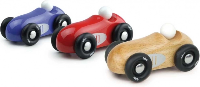 Stilīga miniatūra sacīkšu mašīnīte no lakota koka iepriecinās gan mazus, gan lielus auto entuziastus. Tai ir masīvi gumijas riteņi vienmērīgai kustībai, izturīgs koka korpuss un mūžīgs sarkans dizains. Lieliski piemērota spēlei un kā dekorācija. Ražots Francijā.