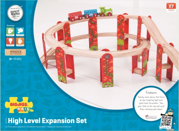 Iepazīstinām ar Bigjigs Rail daudzlīmeņu koka dzelzceļa konstruktoru komplektu – ideālu bērnu radošuma un motorikas prasmju attīstībai. Pateicoties kvalitatīviem un atbildīgi iegūtiem dabīgiem materiāliem, šis komplekts nodrošina stundām ilgu izklaidi un ir saderīgs ar visām pārējām koka vilcienu trasēm tirgū.