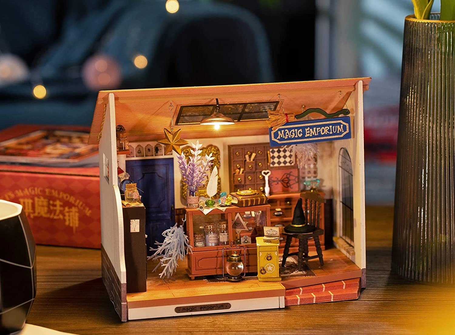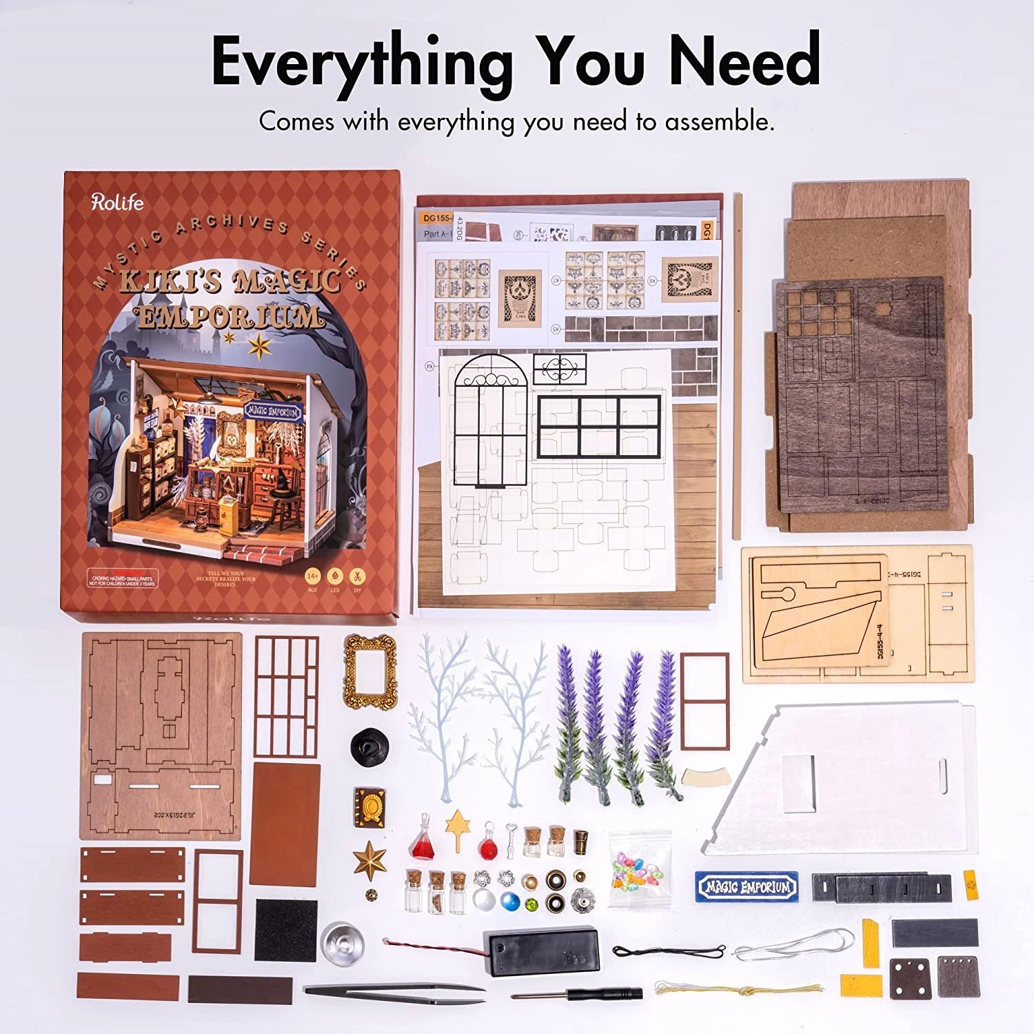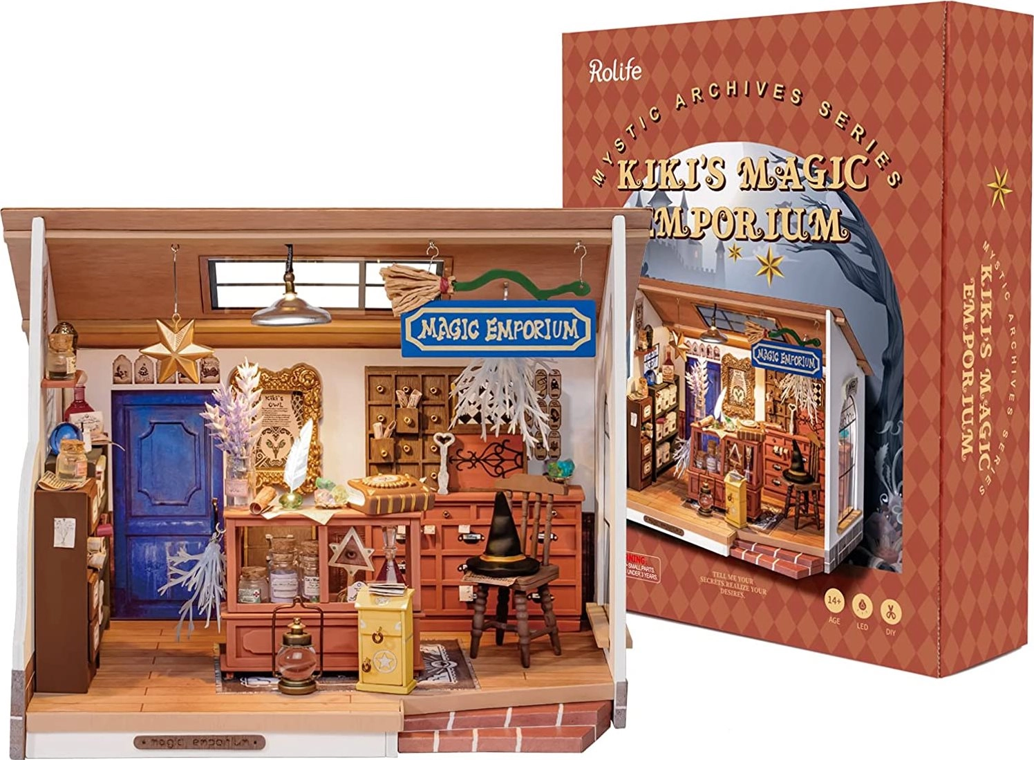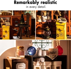 Uzcel savu burvju miniatūro veikalu no sērijas Mystic Archives un atklāj detaļām pārpilnu pasauli. Šis DIY komplekts Robotime Rolife piedāvā vienkāršu montāžu ar daudziem gataviem elementiem, LED apgaismojumu vakara noskaņai un desmitiem sīku aksesuāru – no eliksīriem un kristāliem līdz pat burvju grāmatām. Lieliska dāvana radošām dvēselēm un kolekcionāriem, kas pēc pabeigšanas pārvēršas par iespaidīgu dekorāciju.