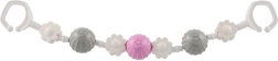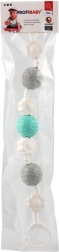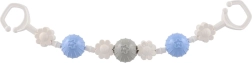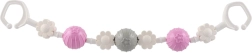 Divi izturīgi klipši galos nodrošina ātru stiprinājumu pie ratiņiem vai gultiņas un stabilu rotaļlietas novietojumu arī brauciena laikā.