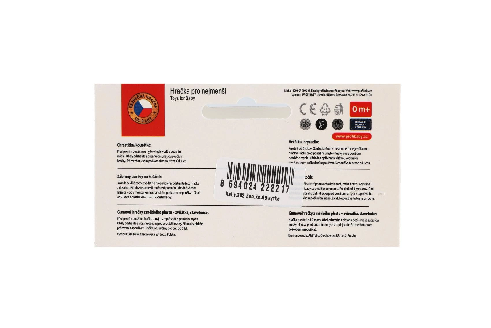Pateicoties klipšiem/cilpām abos galos, rotaļlietu ātri piestiprināsiet pie ratiņiem, autokrēsliņa vai gultiņas malas. Materiāls ir viegls un izturīgs, to ir viegli uzturēt tīru. Krāsas var atšķirties, taču vienmēr tiek saglabāta pievilcīga kontrastējošu elementu kombinācija vizuālai un taustes stimulācijai.