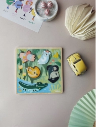 Michelle Carlslund dizains maigās pasteļkrāsās piešķir rotaļlietai pievilcīgu izskatu un rosina iztēli. Koka pamatne ar iedobumiem un dzīvnieku motīviem māca bērniem piesaistīt formas, atpazīt krāsas un dzīvniekus. Puzle ir izturīga, droša un izgatavota no kvalitatīva koka kombinācijā ar tekstilu.