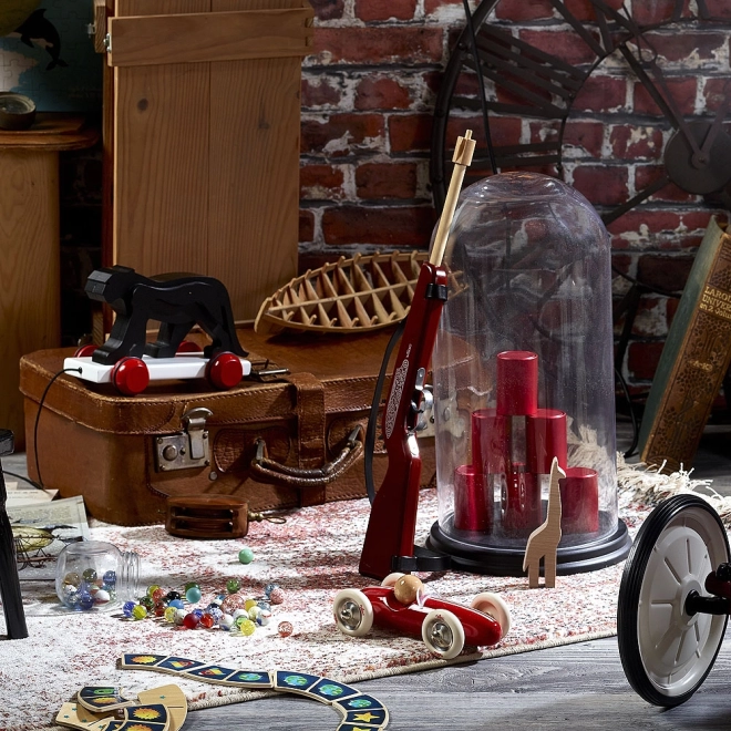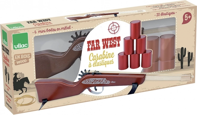 Laipni lūgti Mežonīgajos Rietumos! VILAC koka šautene ar gumijām piedāvā drošu un radošu izklaidi mazajiem šāvējiem. Pateicoties reālistiskam izskatam ar dekoratīviem motīviem un vieglajai konstrukcijai, bērni baudīs stundām ilgas precizitātes spēles – gan vienatnē, gan sacenšoties ar draugiem.