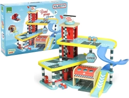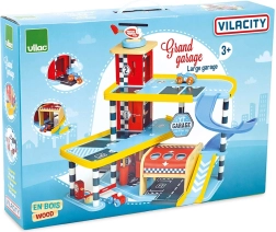 Atklājiet jautrību ar koka garāžu VILAC Vilacity! Šī lielā daudzstāvu garāža piedāvā darbojošos liftu, atslīdošas durvis, stāvvietas barjeru, uzpildes sūkni un mazgātavas birstes. Komplektā ietilpst 2 mašīnītes un helikopters, pilna saderība ar VILACITY kolekciju un videi draudzīga ražošana.