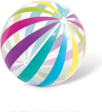 Milzu uzpūšamā pludmales bumba no INTEX ar diametru 107 cm sniedz lielisku izklaidi ūdenī un pludmalē. Caurspīdīgs korpuss ar krāsainiem punktiem/līnijām piesaista uzmanību, bet izturīgais PVC vinils nodrošina ilgu kalpošanas laiku.
