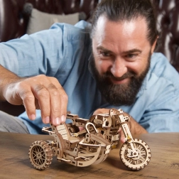 Salikta motocikla ar blakusvāģi modeļa izmēri ir apmēram 22 × 16 × 11,5 cm, un tas kļūs par iespaidīgu interjera akcentu. Detalizēta, attēlota instrukcija ved soli pa solim un nodrošina patīkamu procesu bez līmes.