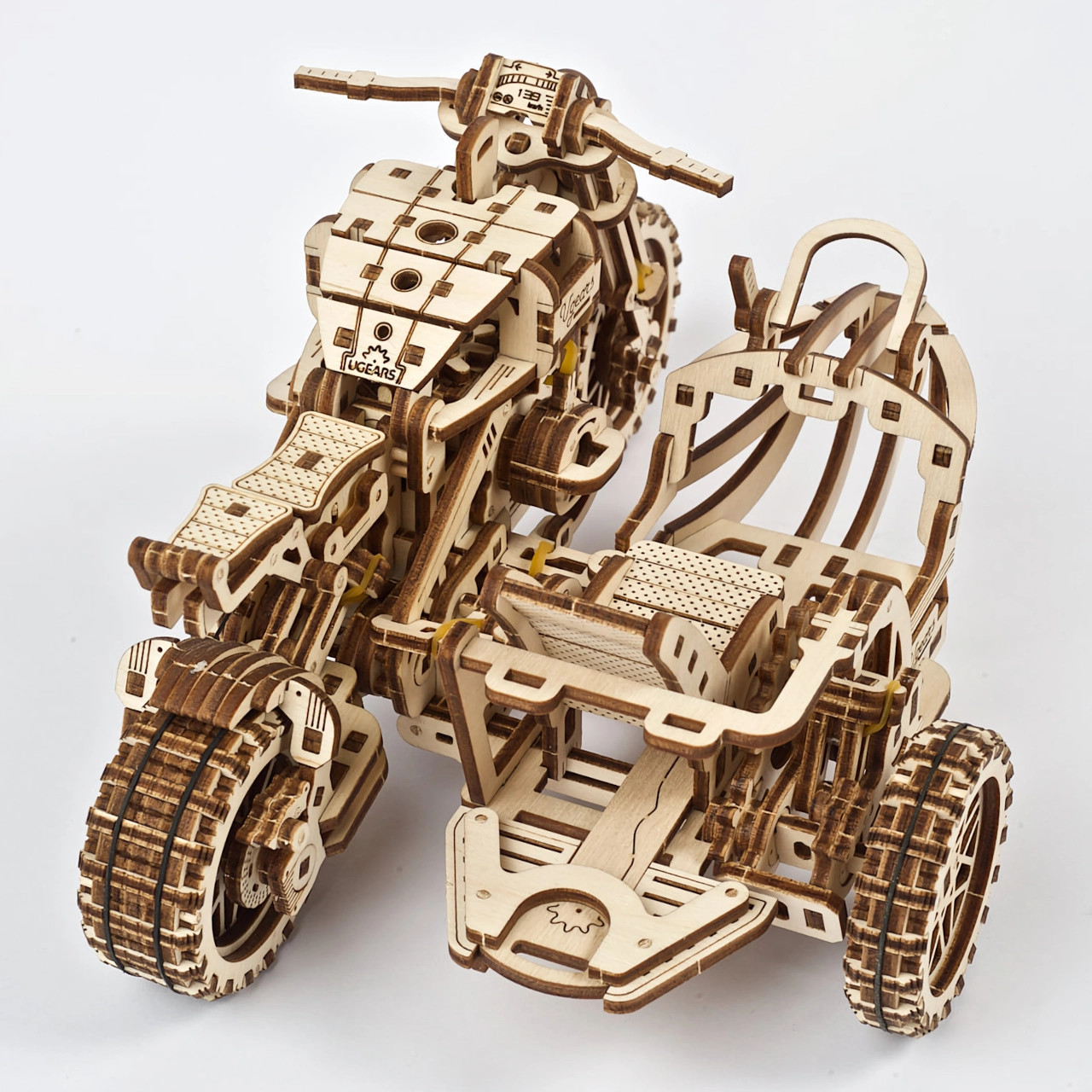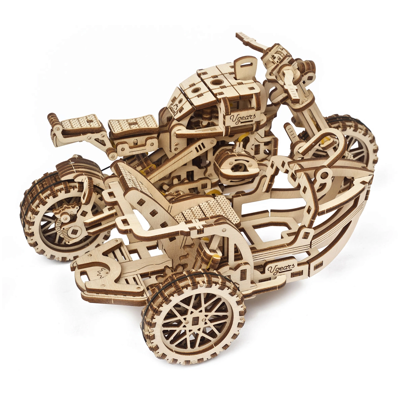 Pēc pabeigšanas iegūsiet iespaidīgu motocikla ar blakusvāģi modeli, kas rotās plauktu un iepriecinās ikvienu tehnikas cienītāju.