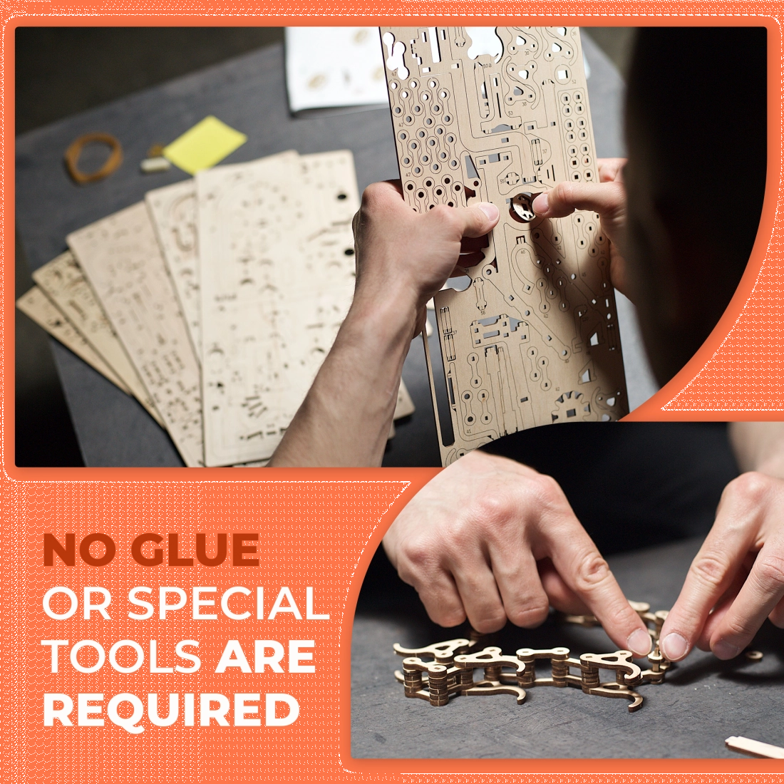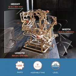 Salikšana ir precīza un aizraujoša, pateicoties 400 precīzi izgrieztiem elementiem un detalizētām instrukcijām. Modelis piedāvā modulāras savienošanas iespējas – apvienojiet divas līdz četras trases un izveidojiet sinhronizētu mehānisku sistēmu, kas piepildīta ar dinamiku un sacensību ar draugiem.