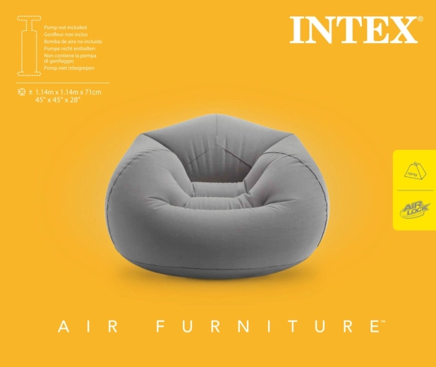 Pateicoties uzpūšamajai konstrukcijai, krēsls ir ideāli piemērots viesistabai, studentu istabai, lauku mājai vai biroja atpūtas zonai. To ir viegli uzpūst un izlaist gaisu, tāpēc to bez piepūles var pārnēsāt un uzglabāt. Pelēkais tonis labi sader ar lielāko daļu dekoru un izceļ modernā interjera tīrās līnijas.