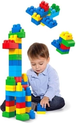 Bērni var celt augstus torņus, trakus pilis, smieklīgus dzīvniekus un visdažādākos fantāzijas veidojumus. Spēlēšanās ar klučiem dabiski veicina smalkās motorikas attīstību, acu–roku koordināciju un radošo domāšanu. Pēc spēles visas detaļas sakārtojamas praktiskā maisā ar rāvējslēdzēju un rokturi, kas lieliski noder arī ceļojumos.