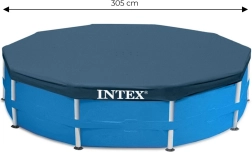 Praktisks INTEX pārklājs rāmja baseiniem ar 305 cm diametru droši aizsargā ūdeni no netīrumiem un palīdz uzturēt temperatūru. Izgatavots no izturīga vinila (110 g/m²), nodrošina precīzu piegulumu, vienkāršu uzstādīšanu ar savilcējvirvi, un pateicoties 25 cm pārlaidumam stingri turas savā vietā.