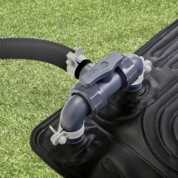 Pateicoties iespējai savienot vairākus paklājus, varat pielāgot sildīšanu sava baseina tilpumam. Iebūvētais bypass vārsts ļauj regulēt plūsmu vai īslaicīgi izslēgt paklāju no aprites. Paklājs atbalsta šļūtenes Ø 32 mm un ar komplektā iekļautajiem adapteriem arī Ø 38 mm. Labākam sniegumam izmantojiet filtru sūkni ar plūsmu 2006–5678 l/h.
