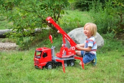 Šis sarkanais autokrāns MERCEDES ACTROS no Lena iepriecinās visus mazos būvētājus. Pateicoties rotējošai strēlei, funkcionālai vinčai ar trosi, izbīdāmām stabilizatora kājām un riteņu ķīļiem, tas nodrošina bērniem autentisku un drošu spēli ar reālistiskām funkcijām. Tas ir ražots Čehijā no izturīgas plastmasas un piemērots gan iekštelpām, gan ārā.