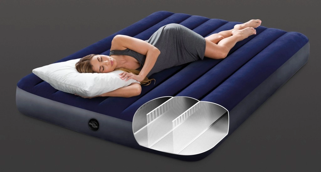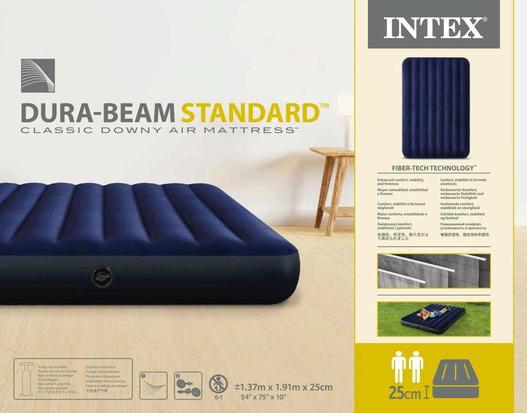 Uzpūšamais matracis INTEX ar Dura-Beam Fiber tehnoloģiju nodrošina veselīgu miegu, pateicoties anatomiskai mugurkaula pozīcijai atpūtas laikā. Matracis ir izgatavots no izturīga PVC, bet augšējā daļa pārklāta ar ūdensizturīgu samtveida materiālu. Pateicoties Boston vārstam, matraci var ātri izlaist gaisu un ērti uzglabāt.