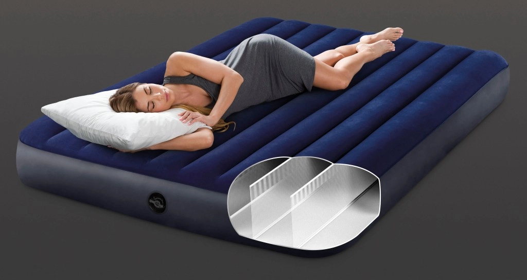 Piepūšamais matracis INTEX ir lieliska izvēle komfortablam divu personu miegam. Pateicoties izmēriem 203x152x25 cm un izturīgajam PVC materiālam ar ūdensizturīgu velūra pārklājumu, tas atbilst visām komforta prasībām. Zilā krāsa piešķir tam elegantu izskatu. Dura-Beam Fiber tehnoloģijas, patentētas ASV, izmantošana garantē ne tikai ilgmūžību, bet arī izcilu komfortu miega laikā.