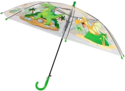 Šis caurspīdīgais bērnu lietussargs ar rotaļīgiem dinozauriem ir ideāls skolai, bērnudārzam un izbraucieniem. Caurspīdīgais kupols nodrošina labāku redzamību ejot, savukārt izturīgie plastmasas un metāla elementi sniedz uzticamu aizsardzību pret lietu.