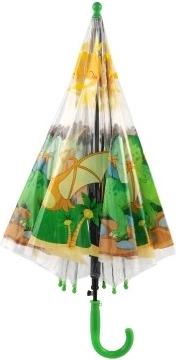 Jautrs bērnu lietussargs ar caurspīdīgu kupolu un krāsainiem dinozauru motīviem pārvērš lietainas dienas jautrībā. Pateicoties automātiskai atvēršanai, vieglai konstrukcijai un ērtam zaļam rokturim, tas ir viegli lietojams un lieliski piemērots bērna rokai.