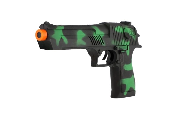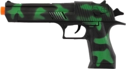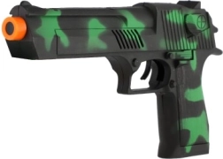 Šī vieglā plastmasas pistole ir lieliska izvēle bērniem, kuri mīl dinamiskas spēles, vienlaikus uzsverot drošību. Pateicoties spararata mehānismam, nav nepieciešamas patronas vai baterijas – skaņas tiek aktivizētas, vienkārši nospiežot mēlīti.
