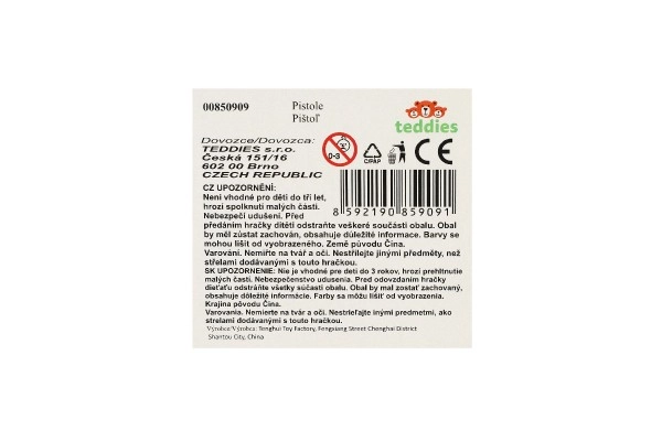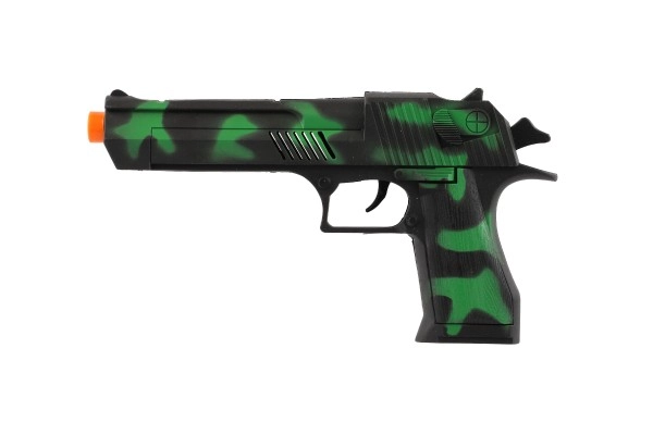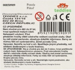 Izklaidējoša un droša rotaļlieta mazajiem piedzīvojumu meklētājiem – plastmasas pistole ar spararatu, garums 23 cm. Nospiežot mēlīti, tā izdod reālistiskus skaņas efektus bez patronām, tāpēc ir droša bērniem un ideāli piemērota lomuspēlēm “policisti un laupītāji” no 3 gadu vecuma.