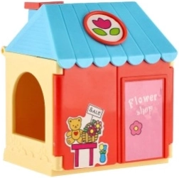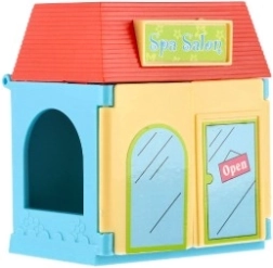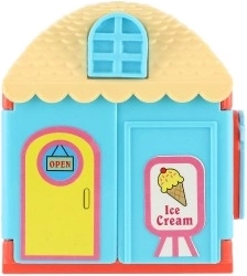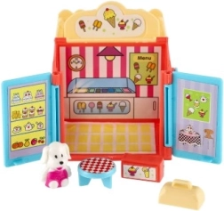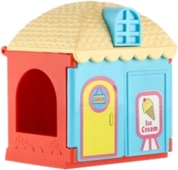 Plastmasas namiņš ar mīluļiem un aksesuāriem – saldējuma kafejnīca, ziedu veikals vai skaistumkopšanas salons