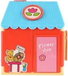 Jautrs namiņš ar ziedu motīviem un kases aparātu māca bērniem saskaņot krāsas, veidot kompozīcijas un parūpēties par klientiem.