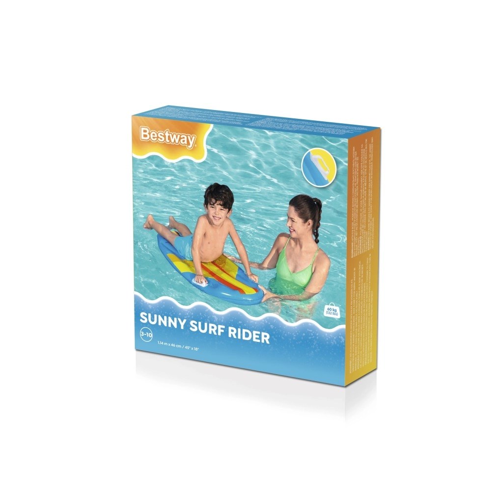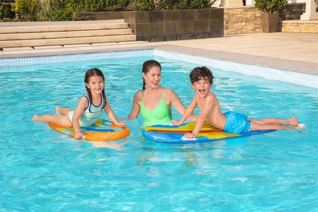 Augstas kvalitātes PVC materiāls nodrošina izturību un ilgu kalpošanas laiku, vienlaikus dēlis ir ļoti viegls un kompakts – tas sver tikai 0,42 kg un ietilpst jebkurā pludmales somā. Priecīgā, košā krāsu gamma mudina bērnus kustēties un rotaļāties baseinā, jūrā vai pie ezera. Vecāku sirdsmieram komplektā ir remonta ielāps.