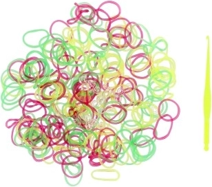 Radi izveidojiet savus modes aksesuārus ar gumītu veidošanas komplektu. Iepakojumā ir 200 krāsainas gumītas un praktiski āķīši ērtai savienošanai. Lieliska izklaide bērniem no 3 gadiem, kas attīsta smalko motoriku, radošumu un iztēli. Kompaktais iepakojums ļauj veidot jebkur un jebkurā laikā.