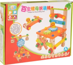 Šis kvalitatīvais koka komplekts ļauj bērniem salikt darbnīcas krēsliņu un citus oriģinālus modeļus. Ar skrūvēm, uzgriežņiem un zobratiem bērni izzina vienkāršas mehānikas principus, trenē koncentrēšanos un veiklumu. Krēsliņš ir stabils, un pateicoties pārdomātai caurumu un savienojumu sistēmai piedāvā daudz kombināciju.