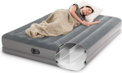 Izbaudiet komfortu jebkur – šis divvietīgais INTEX nopūšamais matracis ir lieliska izvēle kā pagaidu gulta viesiem, ceļošanai vai kempingam. Izturīgs PVC ar patīkamu velūra virsmu novērš palaga slīdēšanu un paaugstina komfortu. Pateicoties pārdomātai iekšējai konstrukcijai, matracis saglabā formu, neieliecas un nodrošina stabilu mugurkaula atbalstu.