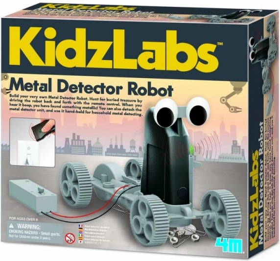 Uzbūvē gudru robotu, kas spēj meklēt metāla priekšmetus apkārtnē. 4M komplekts bērniem saprotami iepazīstina ar elektronikas un metāla detekcijas principiem un vienlaikus piedāvā daudz praktiskas izklaides. Gatavais metāla detektors ir lieliski piemērots mājas eksperimentiem, spēlēm un pirmajiem zinātniskajiem projektiem.
