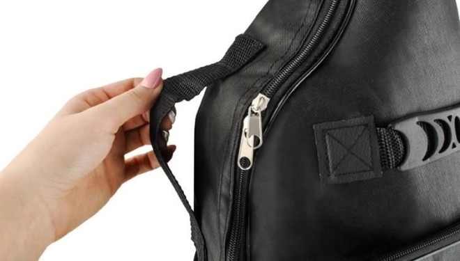 Divas priekšējās kabatas – augšējā sīkajiem piederumiem (kapodastrs, kabeļi, mediatori) un apakšējā A4 formāta notīm – nodrošina kārtību un ērtu piekļuvi. Regulējamas siksnas un sānu rokturis ļauj ērti pārvadāt gan kājām, gan sabiedriskajā transportā. Divvirzienu rāvējslēdzējs atvieglo ātru atvēršanu un instrumenta ievietošanu.