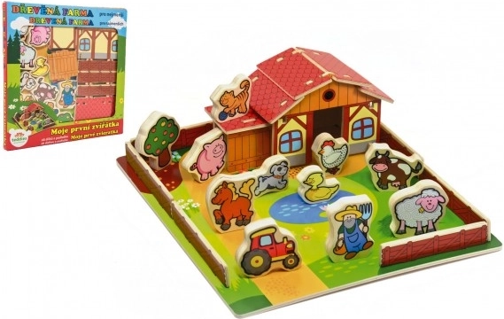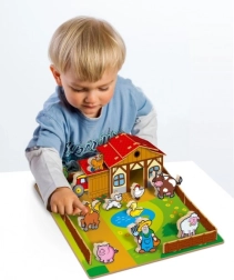 Šī koka ferma ir ideāli piemērota maziem bērniem no 3 gadu vecuma. Uz koka pamatnes ar izmēriem 31 x 31 cm fermu var viegli salikt, veidojot perfektu rotaļu namiņu, kas pilns ar dzīvniekiem. Komplektā ir 28 detaļas, kas piedāvā bezgalīgas iespējas iztēles spēlei.