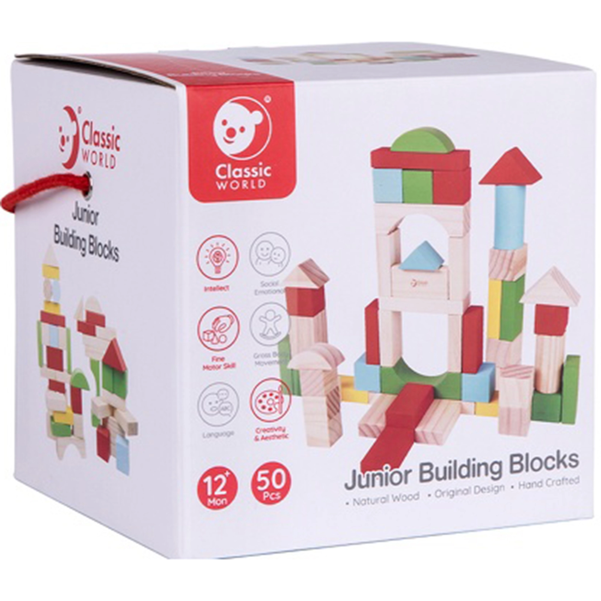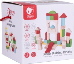 Atklājiet neierobežotas jautrības un mācīšanās pasauli ar Classic World koka klučiem, kas izstrādāti drošai mazo bērnu spēlei. Šiem klučiem nav asu malu, kas nodrošina mazo būvētāju drošību.