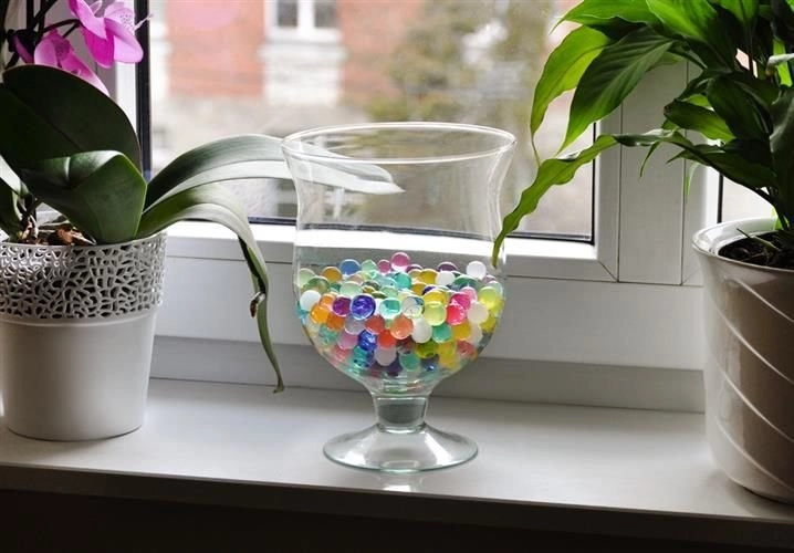 Hidrogelētas lodītes ir ideāli piemērotas vāžu un puķupodu dekorēšanai, vienlaikus palīdzot augiem uzturēt optimālu mitrumu. Katra lodīte pēc ūdens uzsūkšanas uzbriest līdz ~15 mm, tādējādi ilgstoši nodrošinot ūdeni saknēm. Krāsainais mikss piešķir efektīgu izskatu jebkuram aranžējumam.
