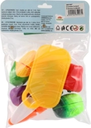 Ideāli piemērots bērnu virtuvei, spēlei veikalos vai “gatavošanai”. Komplekts veicina acu–roku koordinācijas attīstību, krāsu un formu apguvi, kā arī veselīga uztura pamatu iepazīšanu rotaļas veidā.