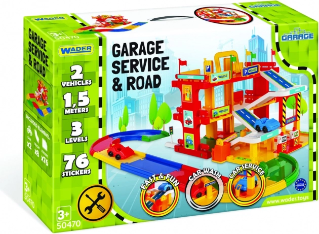 Atklājiet Wader Service garāžu – sapņu rotaļlietu mazajiem autobraucējiem. Krāsaina un viegli saliekama konstrukcija ar reālistisku spēļu dizainu veicina radošumu un attīsta bērnu prasmes.