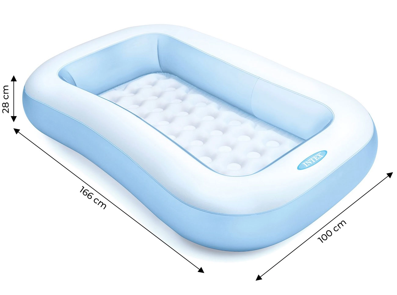 Izmēri 166 × 100 × 28 cm un ūdens līmenis 18 cm ir ideāli piemēroti mazākiem bērniem. 0,30 mm PVC materiāls kalpos vairākas sezonas pie ikdienas lietošanas.