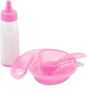 Šis leļļu komplekts ir ideāls papildinājums katrai mazajai rūpētājai. Sagatavo gardus ēdienus bļodiņā un pasniedz savam lellei ar komplektā iekļauto karotīti un dakšiņu. Vēro, kā piens pudelītē “pazūd”, kad dod lellei padzerties, un atkal parādās, kad pudelīti apgriez otrādi. Šis komplekts sniedz stundām ilgu izklaidi un veicina sīko motoriku un rūpes par citiem.