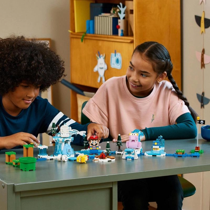 LEGO Super Mario: Sniega piedzīvojumi ar Fliprusu – paplašinājuma komplekts ļauj bērniem izveidot dinamisku ledus līmeni digitālo monētu iegūšanai un dažādu stāstu spēlēšanai.