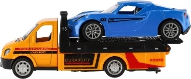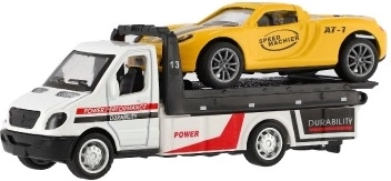 Mazs, bet jaudīgs evakuators ar mašīnīti iepriecinās katru mazo šoferi. Pateicoties inerces mehānismam (pull-back), transportlīdzekļi strauji izkustas, metāla–plastmasas izpildījums nodrošina izturību un detalizētu apdari, bet kompaktie 11 cm ir ideāli spēlēšanai mājās un ceļā.