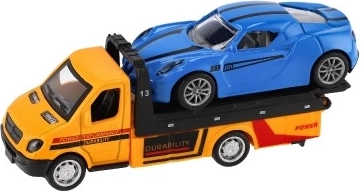 Šis realistiski izstrādātais evakuators ar uzkrautu sporta mašīnīti papildinās bērna autoparku ar iemīļotu darba auto. Pateicoties pull-back inerces mehānismam, pietiek piespiest, atlaist un vērot darbību – lieliski ainiņām no pilsētas, ceļa vai autoservisa.