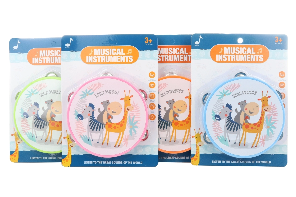 Ieprieciniet bērnu spēles ar krāsainu tamburīnu ar dzīvnieciņiem, diametrs 16 cm. Tā ir viegla, droša un ideāli piemērota pirmajai iepazīšanai ar mūziku. Veicina bērnu ritmu, motoriku un radošumu jau no 3 gadu vecuma.