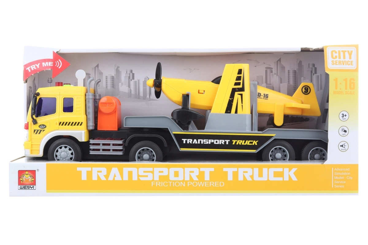 Atklājiet dinamisku kravas auto un lidmašīnas kombināciju, kas sajūsminās visus mazos transportlīdzekļu entuziastus. Pēc pogu nospiešanas kravas auto spīd un atskaņo skaņas, padarot rotaļas vēl reālistiskākas un aizraujošākas.