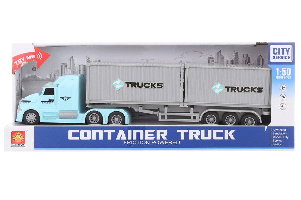 Reālistisks kravas automobilis ar konteineriem, kas darbojas ar baterijām, iepriecinās ikvienu mazo šoferi. Nospiežot pogas, tas izdod skaņas efektus un spīd, tam ir izturīgs izpildījums un ideāls izmērs spēlēšanai mājās un ceļā. Komplektā ir iekļautas baterijas, tāpēc varat sākt uzreiz.