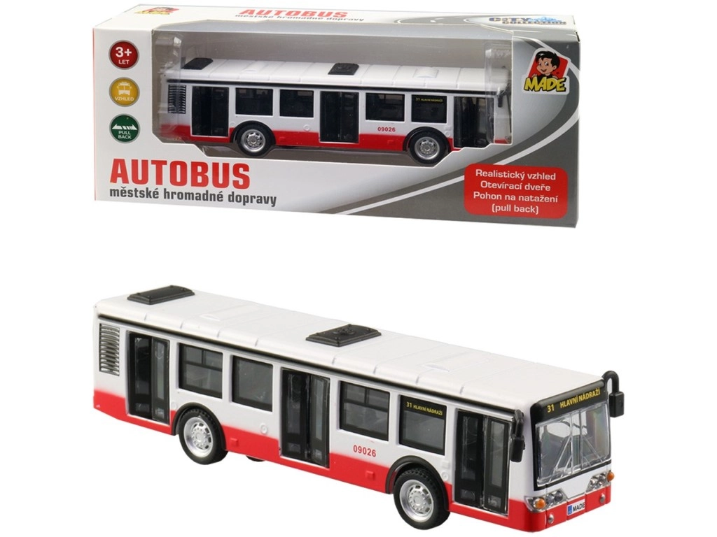 Stilīgs metāla autobuss ar latviskajam skatītājam pazīstamu pilsētas sabiedriskā transporta dizainu iepriecinās gan mazus, gan lielus MHD fanu. Tas piedāvā reālistisku izskatu, atveramas durvis un atpakaļgaitas uzvilkšanas piedziņu. Kompaktie izmēri ir ideāli bērna rokai, bet izturīgā metāla un plastmasas kombinācija nodrošina ilgu kalpošanas laiku.