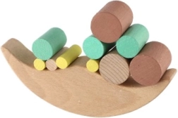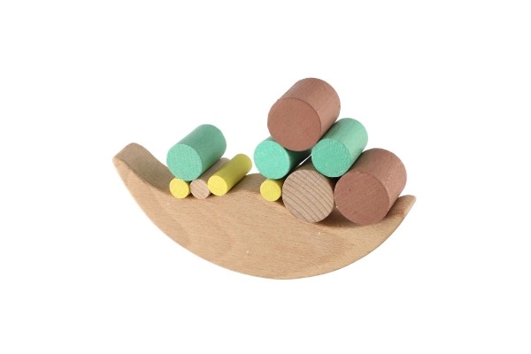Spēlē ir dažādi bloki, kurus bērni liek uz balansējošās pamatnes, tādējādi trenējot sīko motoriku.